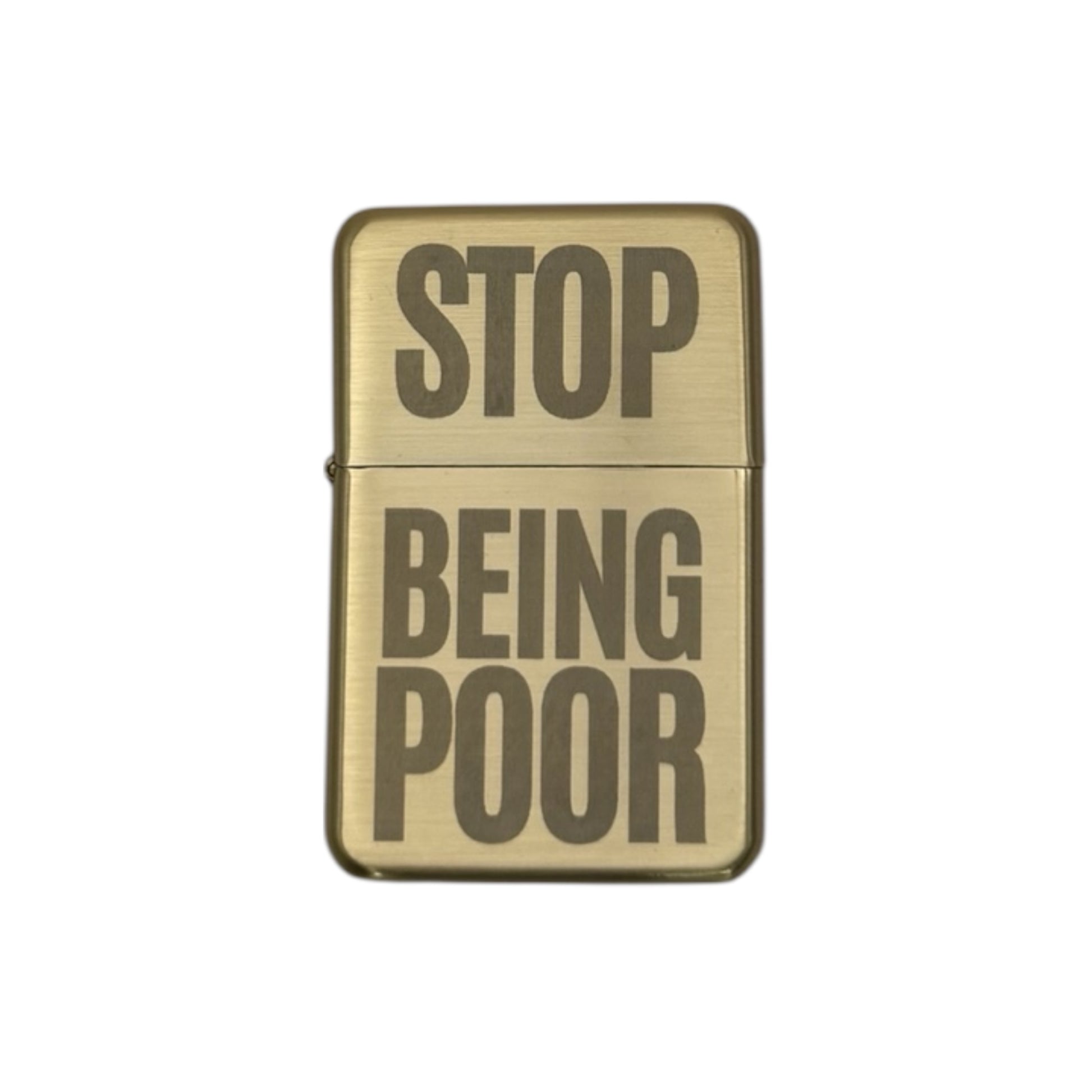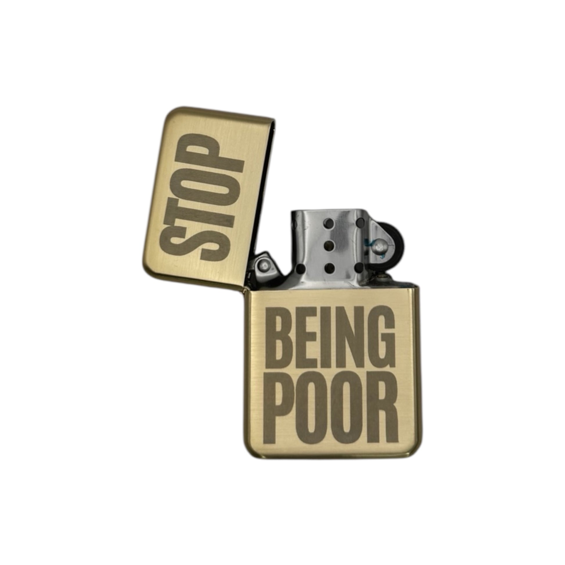 Brushed gold flip-top lighter (Zippo-style form factor)